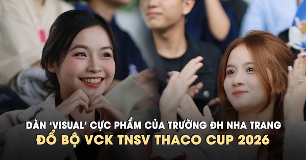 Khán đài sân bóng Trường ĐH Nha Trang chiều 9.3 thực sự bùng nổ không chỉ bởi sức nóng của VCk TNSV THACO cup 2026, mà còn bởi dàn CĐV 'visual' cực phẩm của khán giả đội nhà.